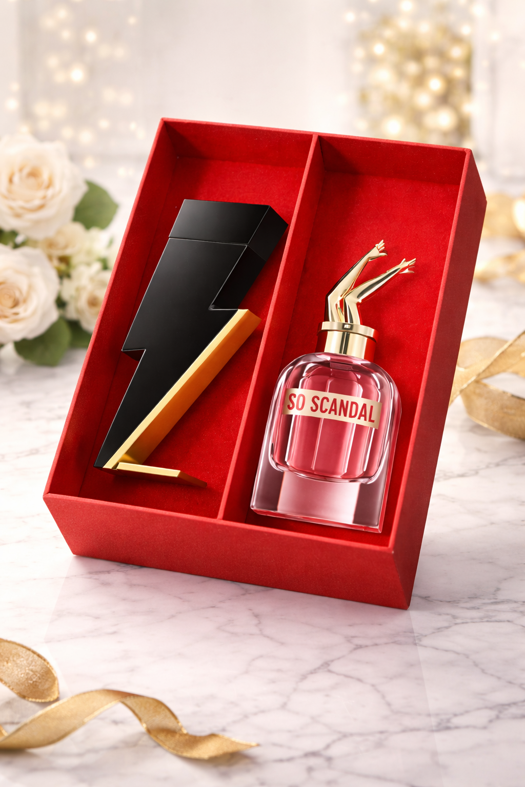 Un pack pensado para regalar sin fallar: una fragancia masculina intensa y una fragancia femenina con personalidad. Dos perfumes de 100 ml en una presentación elegante y lista para entregar.